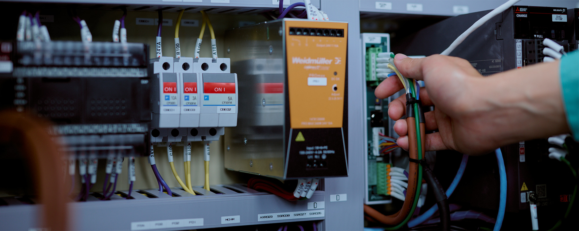 装置の電気設計や調整のために、デスクと現場を行ったり来たりしながら作業をしています。仕事は丁寧に、プライベートの時は楽しくと、切り替えがしっかりしているのが当社の魅力です。