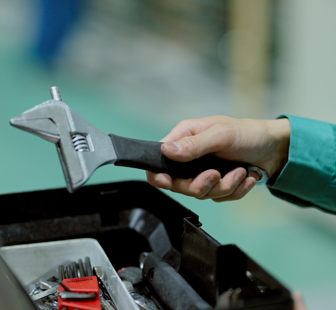 機械の図面や設計図に従いながら、組立・製造していきます。組立のあとは調整作業です。締め忘れの確認をはじめ、部品同士の接触場所に不備はないか、正常に作動するかなど入念に確認しながら調整を繰り返します。